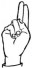 На ћирилици написано БРАНИСЛАВ ШКОРО састоји се из 14 слова [?]. Исписано ћириличном једноручном азбуком за глувонеме: